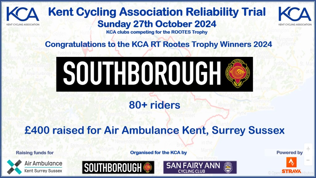 Congratulations to our winners Southborough & District Wheelers! Well done to everyone who took part in the event, the feedback and photos have been brilliant. The event raised £1000 to support a KCA charity donation to the Kent, Surrey & Sussex Air Ambulance.